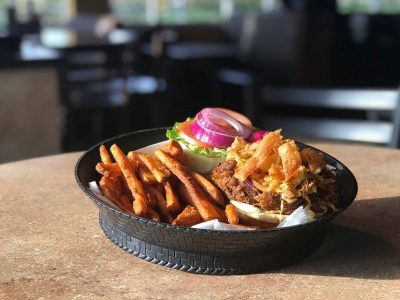Smoked brisket, tender ribs, smoked sausage, bacon & cheddar with lettuce, tomato, house BBQ & ranch.